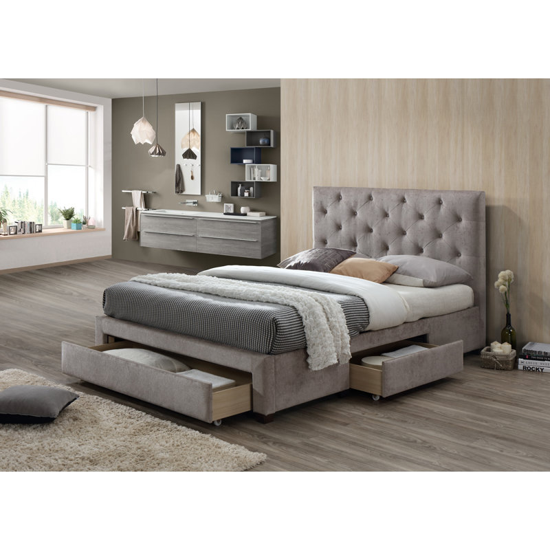 Upholstered in hyde snow performance fabric, this upholstered bed will bring a contemporary, serene feel to your bedroom. First, metallics never go out of style. Insert a corner bracket between the post and the plank, and the bolt together with the suspension bolts and drill. Full/queen king california king cloth cotton faux leather polyester velvet unupholstered upholstered toddler twin twin extra long full full/queen king california king bed. Full tutorial can be found at.